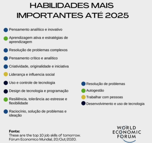 - 50% de todos os funcionários precisarão de requalificação até 2025, conforme aumenta a adoção de tecnologia, de acordo com o relatório do Fórum Econômico Mundial sobre o Futuro dos Empregos.