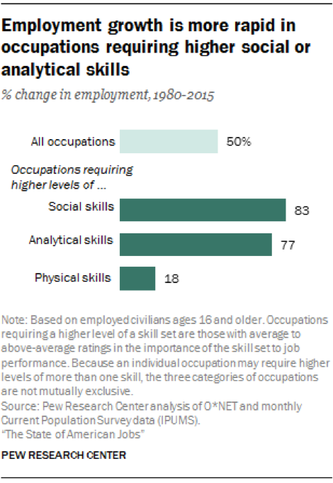 Outro importante centro de pesquisa mostra o crescimento da demanda do mercado por trabalhadores com maiores habilidades sociais ou analíticas